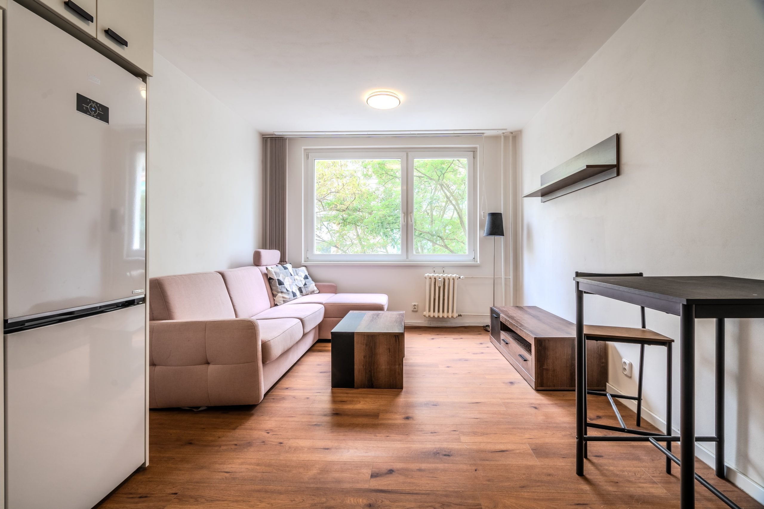 Nabízíme k pronájmu světlý a útulný byt 1+kk s užitnou plochou 29 m², nacházející se ve 2. nadzemním podlaží panelového domu po kompletní rekonstrukci v roce 2024. K bytu navíc patří praktická komora (1,6 × 1,2 m) přímo v bytě, která poskytuje dostatek úložného prostoru.