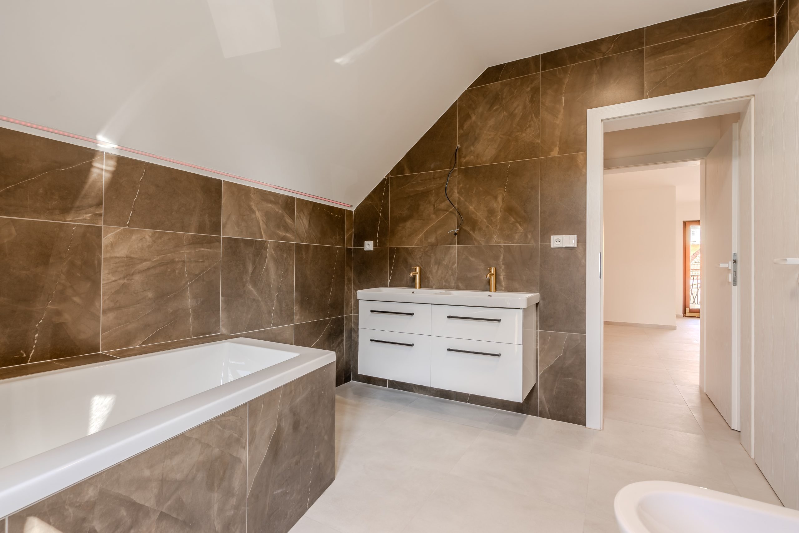 Dům je postavený z vysoce kvalitních materiálů, kondenzované plynové kotle Baxi, podlahové vytápění, příprava na klimatizace a kuchyně, koupelny jsou vybaveny kvalitní sanitou např. značky Villeroy&Boch. Energetická náročnost budovy je B.