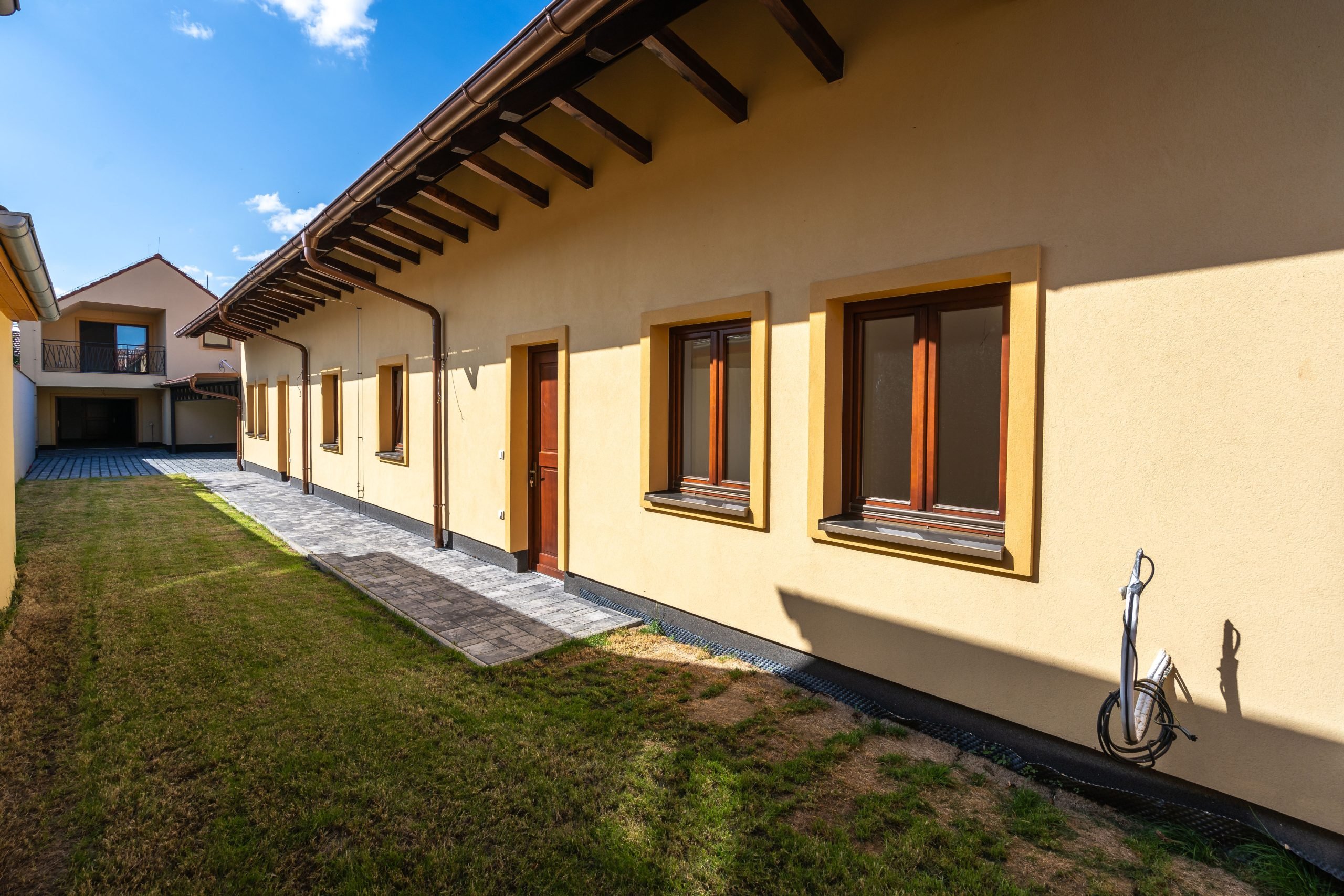 Velikost bytové jednotky 3+kk v hlavní části je 88m2 nabízí krásný prostorný obývací pokoj s kuchyní a terasou s výhledem na zámek, 2 ložnice, koupenu a toaletu. Další 2 bytové jednotky 3+1 situované v zahradní části mají každá 83m2 a nabízí ložnici, obývací pokoj, kuchyň, koupenu, wc a technickou místnost. K těmto jednotkám patří předzahrádka k využití pro posezení nebo grilování.