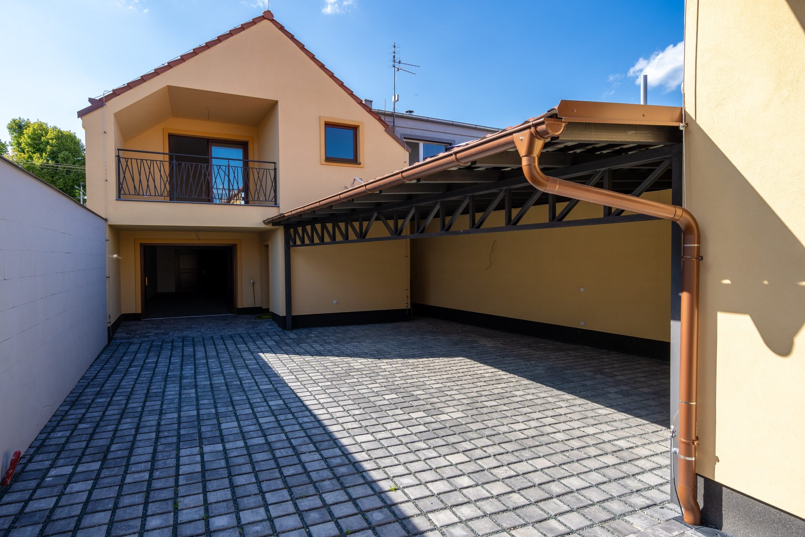 Ve vnitrobloku jsou také parkovací stání pro všechny bytové jednotky. Pro každou jednotku je také v domě umístěn prostorný sklep s přípojkou na pračku.